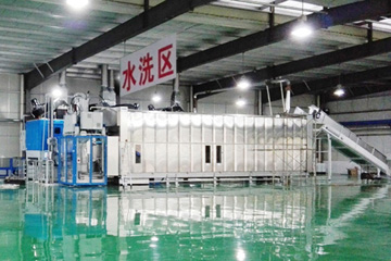 | 引進德國進口簡森全自動化洗滌生產線,實現紡織品分揀、洗滌、脫水、烘干、燙平、折疊、傳輸自動化,節水、節能、節省用工。 |